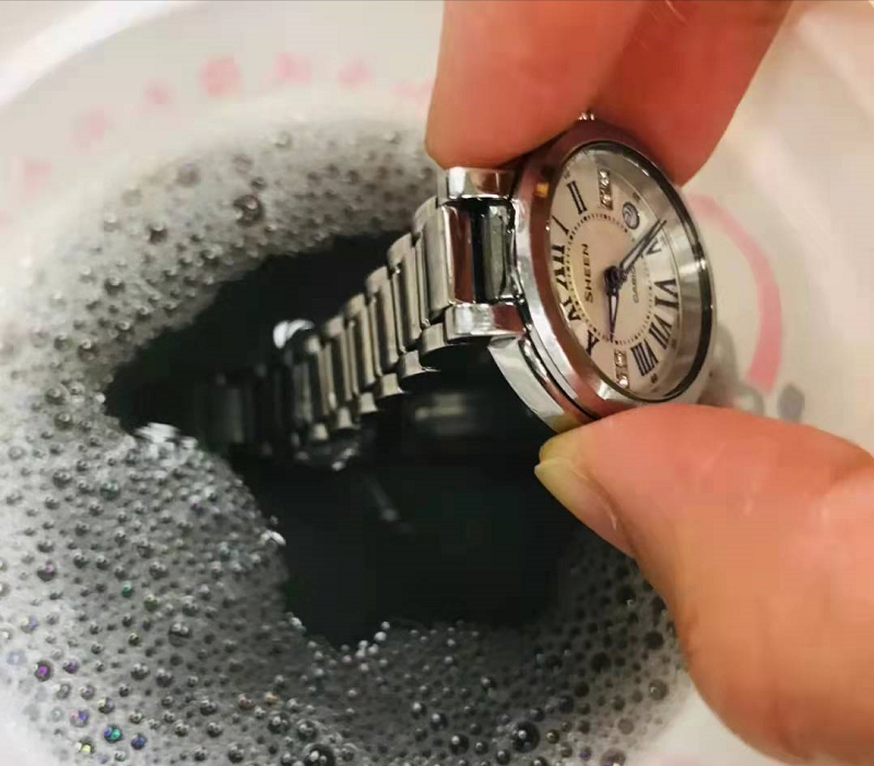 Method 1: Remove the watch strap and soak it in salt water for half a day. You will find that there are some black dirt deposits in the water. Then clean the watch with a toothbrush.