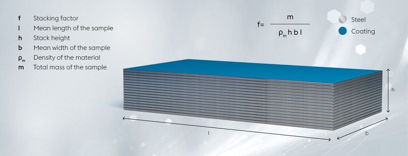 Two variables have a decisive effect on the stacking factor: sheet thickness and coating thickness. Sheet surfaces are not completely smooth and feature a certain degree of roughness. Even when uninsulated material is used, the stacking factor is less than 1 because there are always air pockets between the laminations in the stack. The stacking factor is additionally reduced when coating layer thicknesses increase. The thinner the sheet is, the more pronounced the reduction in the stacking factor will be. The thicker the coating layer is on the strip surface, the less iron there will be in a stack of sheets of a given height. The thinner the electrical steel is, the less advantageous this ratio will become. (The ratio of sheet metal to coating thickness will become smaller and smaller.)