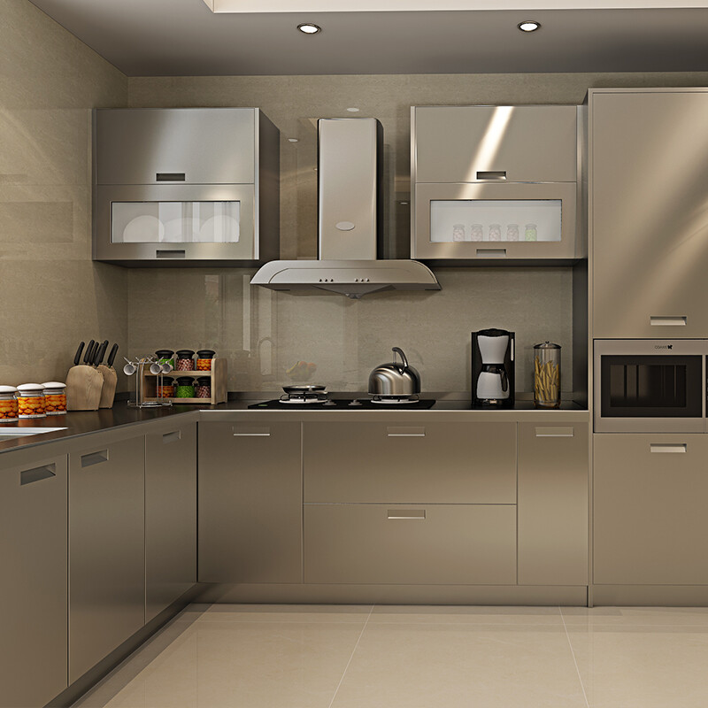3. Materials such as stone and wood are relatively easy to mold or weather when exposed to water for a long time in the kitchen, and other metal materials are not suitable for kitchen decoration in moisture, so colored stainless steel metal is far more suitable than other materials. Cabinet decoration. However, this metal material also has good or bad quality. Generally, 201 and 304 stainless steel sheets are commonly used, but the 304 material will have stronger rust resistance.