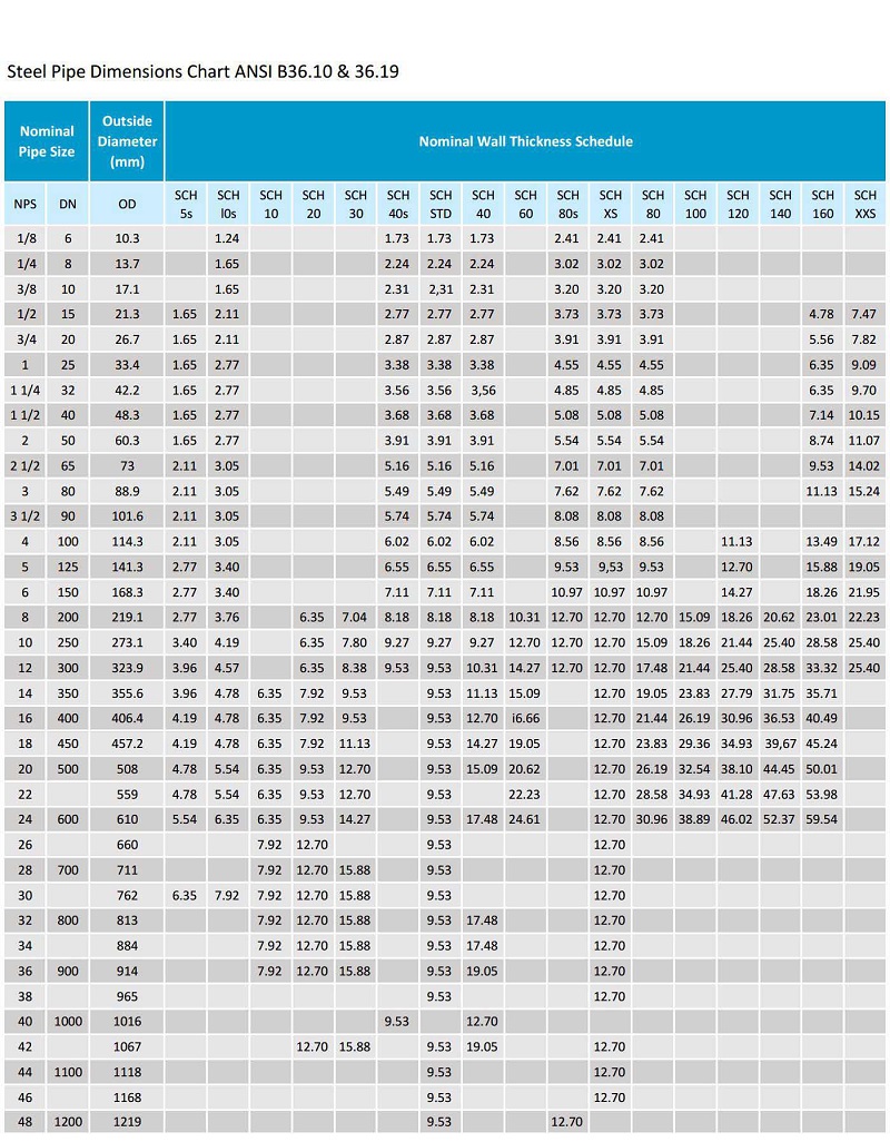 Steel Pipe Dimensions Chart (Size Chart)