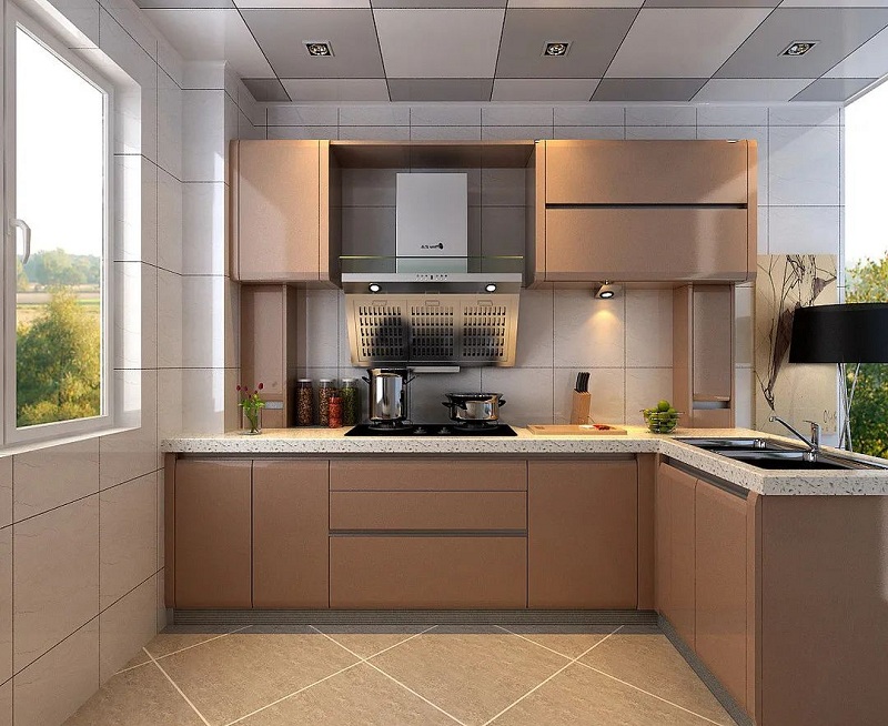 Pay attention to the reasonable layout when designing kitchen cabinets. Make full use of the kitchen space, no matter the corner position or the upper position, effectively form a perfect working area for washing, cutting and frying. Of course, the most perfect cabinet layout should be an L-shaped layout, with clearer partitions. The cooking area, dish preparation area, and washing area are independent and do not interfere with each other. Moreover, the aisle can accommodate two people at the same time, which is suitable for larger kitchens.